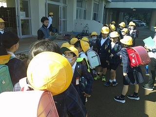 5限後に、全校集団下校訓練を実施しました。緊急時に備えて方面別にグループで下校する訓練です。