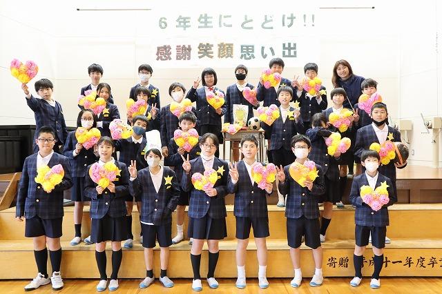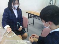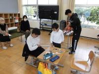 水引アートクリエイターの井波佳奈氏を講師にお招きして行いました。子供たちは、水引が人生の節目で用いられる大切なものであることを知り、自身の卒業式に思いをはせながら、心をこめて作成しました。