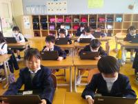 「春を感じるものをたくさん出し合おう」の学習で、クロームブックのジャムボードを使って、考えを出し合いました。自分の考えが画面上に出てくると大興奮して、楽しく学習することができました。これからもクロームブックを活用して、学ぶ楽しさをみんなで広げていきましょう。