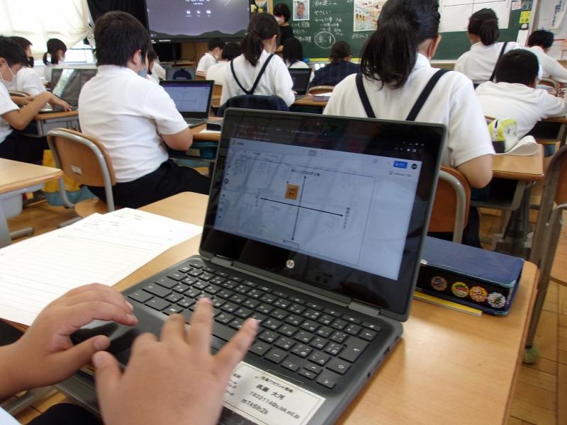車いすを使って生活している酒井さんの困り感を思い出しながら、自分たちにできることをタブレットのJamboard機能を使ってみんなで交流しました。