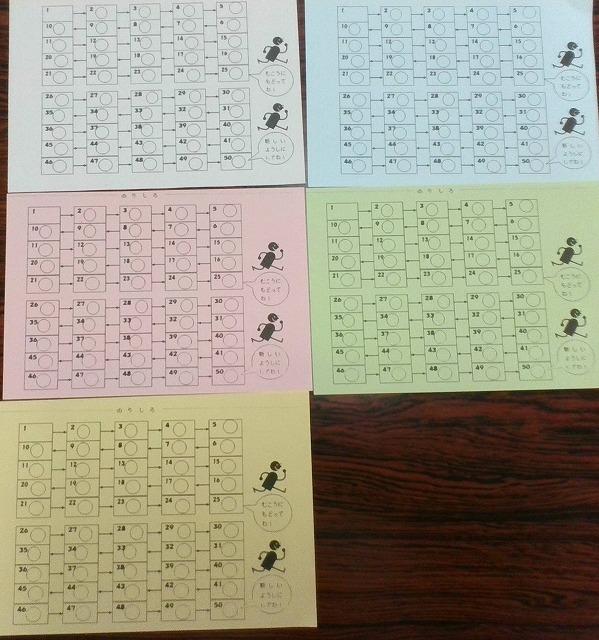 11月9日(水)のマラソン大会に向けて、かけ足運動が18日(火)から始まりました。長休みに1~3年生は一周150m、4~6年生は250mのトラックをそれぞれ走りますが、今年も、運動場が密にならないように、走る学年を分けて取り組みます。走った周数をカードに記録し、1枚目(白)が終わったら2枚目(水色)・・・と進みます。長く走ることができるようにがんばって取り組んでほしいです。
