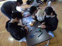春から夏にかけて育て、観察してきたあさがお。その種を収穫した後は、つるを使ってリースづくりをしていきます。この日は、丸く束ねたあさがおのつるにまつぼっくりやどんぐり、色とりどりのリボンで飾り付けをしていました。1年生の教室に入っていくと、「校長先生、見てください」と自分で作ったリースを得意げに見せてくれる子もいました。自分で使うと危険な道具は先生が手伝いますが、はさみやのりなどをうまく使うことも学習の一つです。どんなリースができるのか楽しみですね。