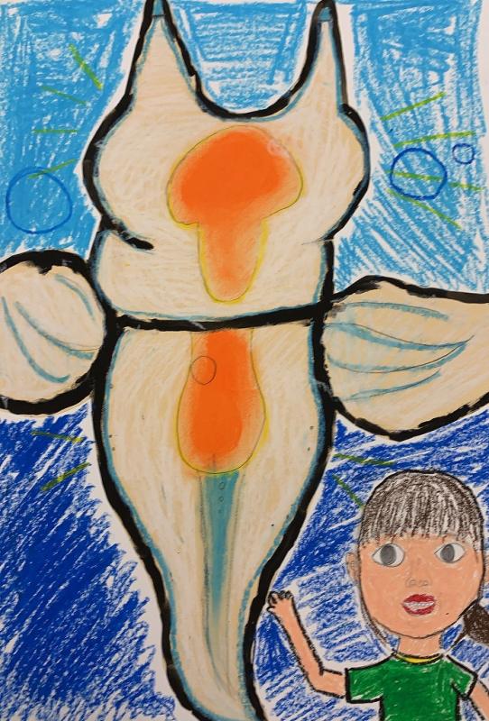 今、3年生の生活の中で生き物とふれあいたい、という思いが強くあります。その思いを表そう、というテーマで画用紙にクレヨンで描きました。