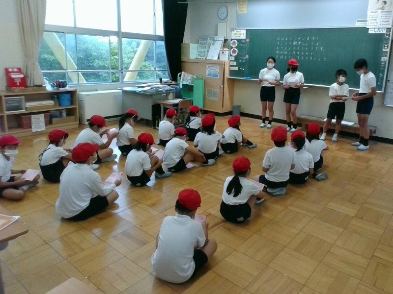 10月8日の運動会に向けて、今週から運動会特別時間割が始まっています。28日(水)には朝学習の時間を使って応援合戦の練習をしました。今年は3年ぶりに応援合戦の時間を設定しましたが、感染対策のため応援団以外は声を出さず、手拍子や振り付けなどで工夫しながら応援していきます。この日は、それぞれの学年が赤白に分かれ、6年生からコールや手拍子のやり方を教わりました。