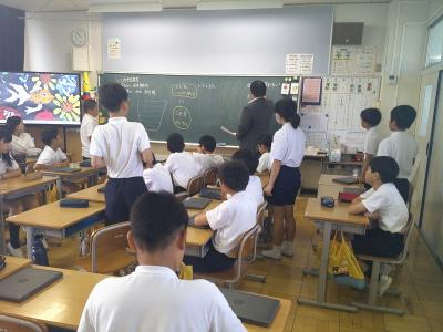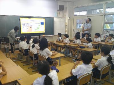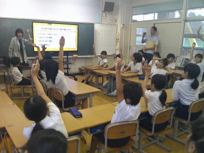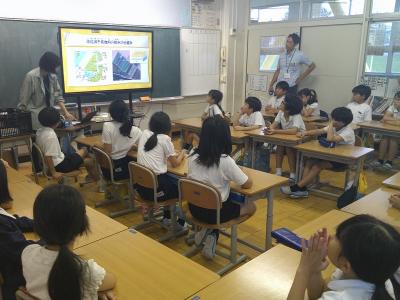 鶴ケ丘小学校4年生が、西荒屋小学校と合同で環境教室を行いました。
