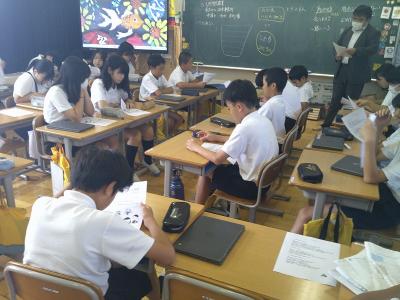 事例をもとに、自分たちができること、気をつけることを真剣に話し合う授業でした。