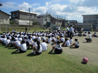 休み時間ということもあり校舎や運動場など様々な場所に児童がいましたが落ち着いて放送を聞いて避難することができました。
