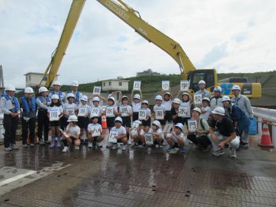 大きな機械の音や動きを目の当たりにし、子ども達は工事の迫力を