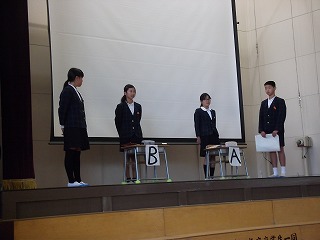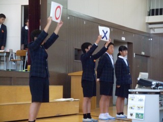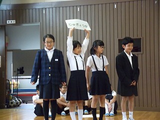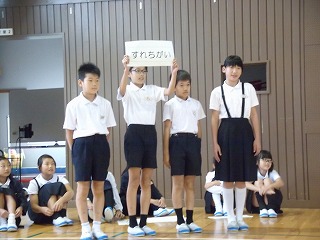 全校集会では5年生の皆さんが、上の取組について、寸劇を交えながらわかりやすく説明してくれました。