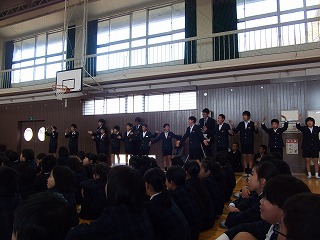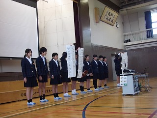 全校集会では、校長先生をはじめ、5年生からの激励の言葉をいただきました。