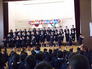 6年生は、嵐の「ふるさと」とCMでおなじみの「やってみよう」の2曲を歌いました。