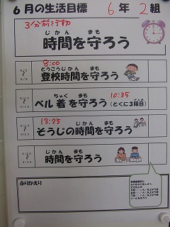 2017年6月9日 07時35分 6月の生活目標は「時間を守ろう」です。