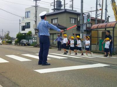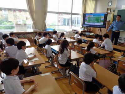 1年生は道路の歩き方について、4年生は自転車の乗り方について、津幡警察署の方からお話をうかがいました。