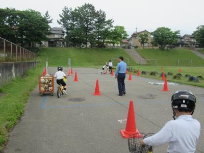 2限目には1年生は内灘交番前で横断歩道の渡り方を、4年生はグラウンドで自転車の乗り方を実際に練習してみました。