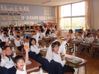 あれっ、2年1組だけデザートが? どうしてミカンがあるの Mさんありがとう。