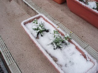 名前は寒咲きキンセンカ。寒さに非常に強く、-15℃まで耐えることができるそうです。雪や霜で他の花が元気ない時でも元気に咲くので「冬知らず」と言う名がピッタリです。小さな黄色の花をたくさん付けます。日が当たらないと花が開かないので日当たりの良い場所で育てます。
