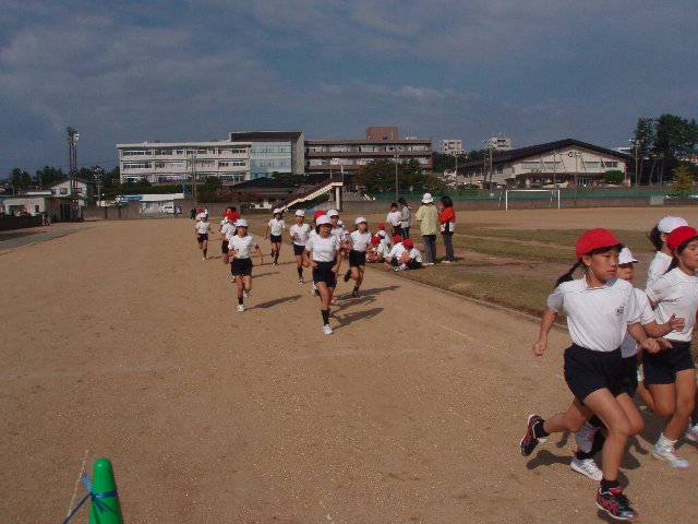 マラソン大会、中学校の向かいの陸上競技場で気持ちよく走りました。