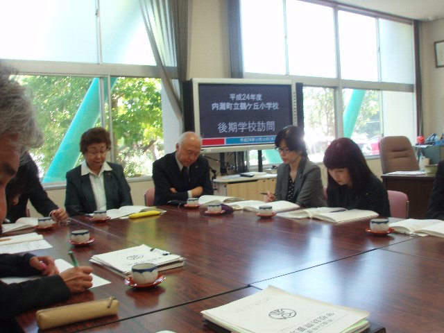 学校訪問・・・町と県の教育委員会の方に鶴ケ丘小の様子を見ていただきました。子どもたちの生活、学習について指導助言をいただきました。どのクラスも落ち着いた学校生活を送っているという感想をいただきました。
