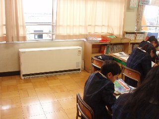 そこで寒さに備えて暖房器具のテストをしました。鶴ケ丘小は環境に優しい蓄熱式のヒーターを使っています。