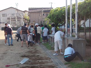 早朝とはいえ暑い中、地区ごとに草むしりをしていただきました。男性の方は運動場周辺の側溝泥上げもしました。夏の間にはびこった草を取り除くことができました。
