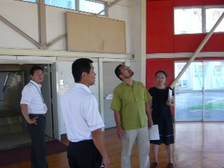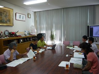前半は、鶴ケ丘小の現在行っている「避難訓練」を含めた防災教育について、後半は地震や津波の発生時における危機管理についてたくさんのご助言をいただきました。校舎を回って現地で細かな指摘をして下さったり、部屋の中でコンピュータの画面を見ながら鶴ケ丘地区の地震の揺れ、津波による浸水について説明して下さったりしました。