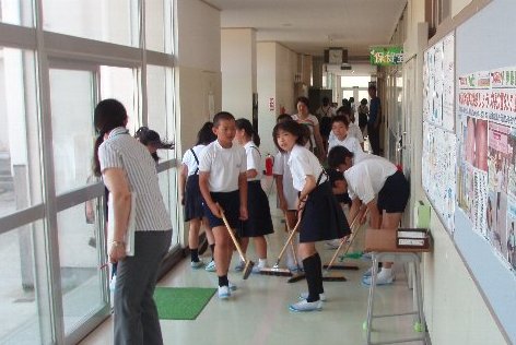 下の写真を見てください。避難訓練が終わった長休み1階廊下とその外の様子です。6年生が避難訓練のため校内が砂などで汚れたのをきれいにしています。こういう姿がまた学校全体に良い影響を及ぼしています。 ありがとう!