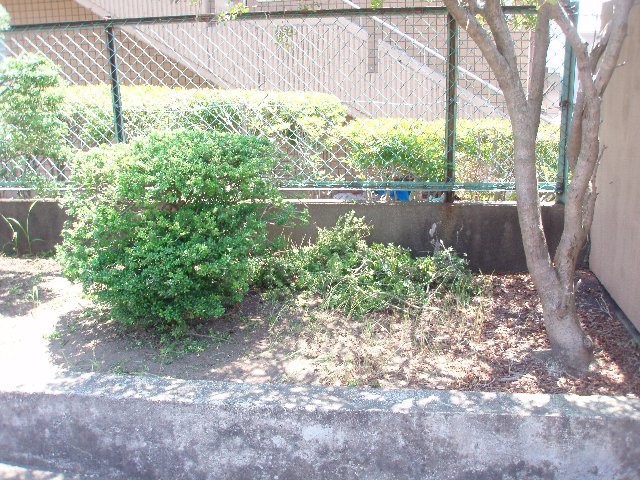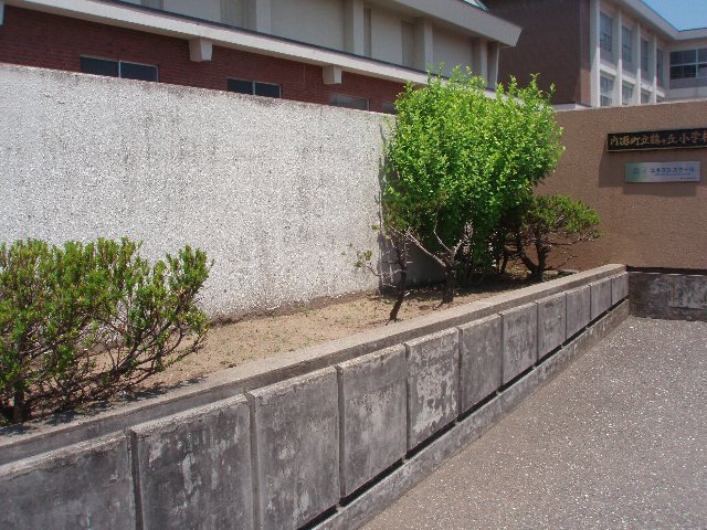 鶴ケ丘小の正門の左右には下の写真のように植え込みがあります。