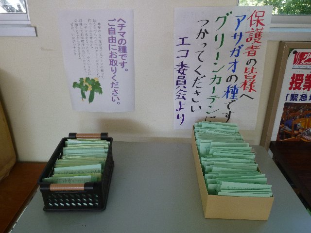 ---授業参加時に児童玄関に置かれたグリーンカーテンの種---