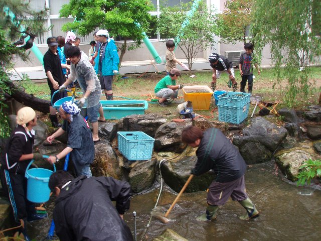 日曜日、PTA役員の方はじめとする保護者子どもたちによる前庭池そうじをしていただきました。