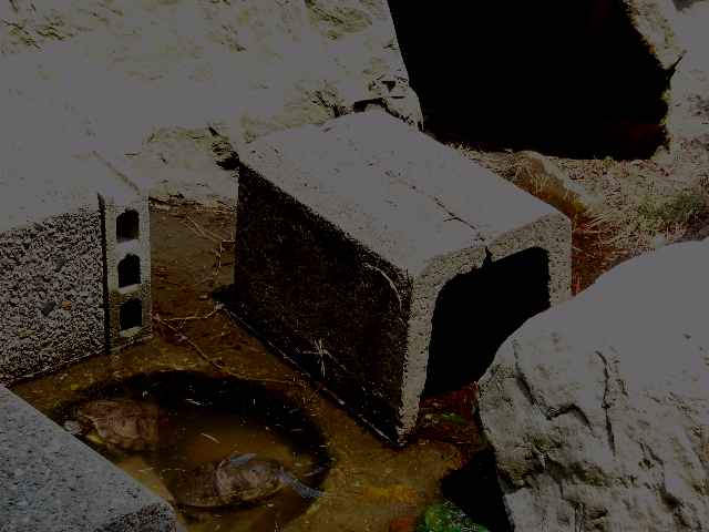 職員玄関前の池(水はためていない)に亀(かめ)がやってきました。どこかににげる場所があるみたいで、現在3匹行方不明です。見つけたら池にもどしてやってください。