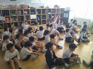 招かれた1年生は大喜び。喜んでもらえた2年生も笑顔でした。
