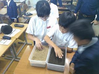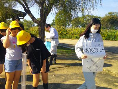 河北潟の水と水道水を比べた透明度検査や水質検査をしたり河北潟に住む生き物を調査したりしました。