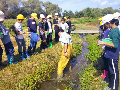 こなん水辺公園で河北潟についての学習、「水辺の学校」を行いました。