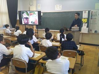MOA自然農法文化事業団の細川さんをお招きし、有機農法の学習をしました。環境に優しい農業についてのお話や有機農法による作物などについて勉強をしました。