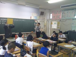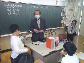 4年生が総合的な学習の時間に、石川県視覚障害者協会の米島 芳文さん、藤原 静香さんをお招きして交流をしました。