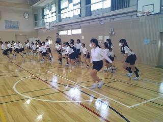 今日からかけあし運動がスタートしました。昼の時間に運動場の周回コースを走ります。今年は、西荒屋小学校と合同での取り組みです。