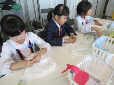 工場の様子や、工場で作った布の製品を見ることができ、子ども達は驚いていました。