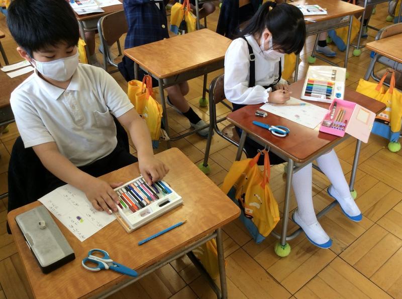 2年生の生活科の学習で、「1年生のために何ができるかな?」ということを話し合いました。すると、「学校の分からないことを教えてあげたい!」「一緒に遊んであげたい!」など、1年生にしてあげたいことがたくさん出てきました。そこで、「一年生を楽しませよう!」という目標を立て、『おあいてさんプロジェクト』がスタートしました。