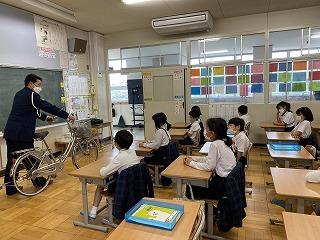 4月27日(水)に,津幡署交通安全課のお巡りさんに来校していただき,自転車の正しい乗り方や安全確認の仕方を教えていただきました。自分の命を守るための大切なお話とあって,どの子も真剣な表情でお巡りさんのお話を聞いていました。大通りや狭い道,坂道が多い内灘町。安全に気を付けて乗ることの大切さを感じ,ルールをしっかり覚え,事故のないように自転車に乗ってほしいと思います。