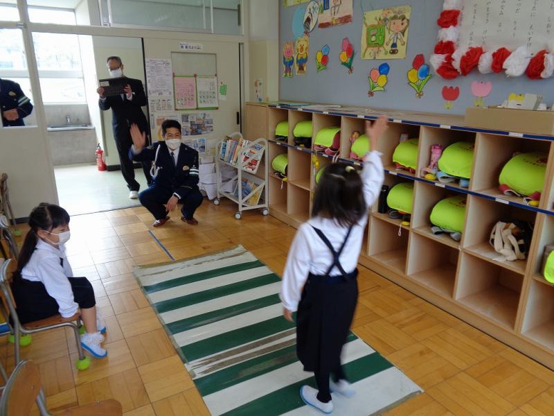 同じく4月27日(水)、1年生も津幡署の方から、交通安全について教えていただきました。歩道のない時は白線の内側を歩くことや横断歩道では左右確認の後にもう一度確認すること、信号が青になってもすぐには渡らないことなど、子どもたちにとっては、登下校の安全な歩き方をたくさん学べる機会になりました。