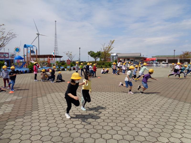 5月2日(月)、1・2年生は、春の遠足で内灘町総合公園(海族公園)に行ってきました。気持ちのよい青空の下、1年生と2年生は声をかけ合いながら、楽しく仲良く遠足に行くことができました。公園では、なかよしグループ対抗で、リングバトンのリレーと、新聞紙を使ったボール運びリレーをしました。