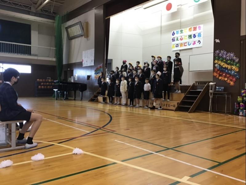 そして、5年生を中心に1~4年生が協力して6年生に感謝の気持ちをしっかり伝えることができました。会場は少ない人数ながらも、たくさんの笑顔と温かい拍手で包まれていました。