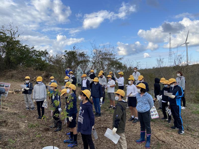 11月17日(水)に、町花でもある「ハマナス」の植樹体験をしてきました。まずは、学校でハマナスについてのお話を聞きました。今は準絶滅危惧種に指定されており、貴重な存在になっていることを知りました。「道の駅内灘サンセットパーク」駐車場横の土手に穴を掘り、ハマナスの苗木を植えました。二人一組で協力しながら楽しく植樹をすることができました。