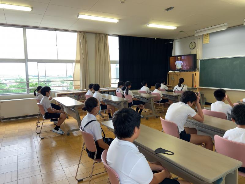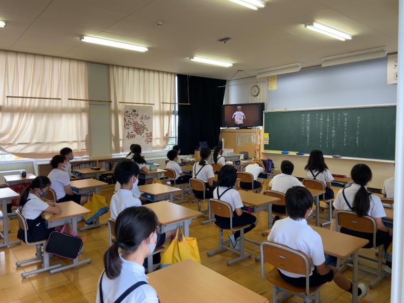 体育館での密を避けるため、テレビ放送で2学期の始業式をおこないました。