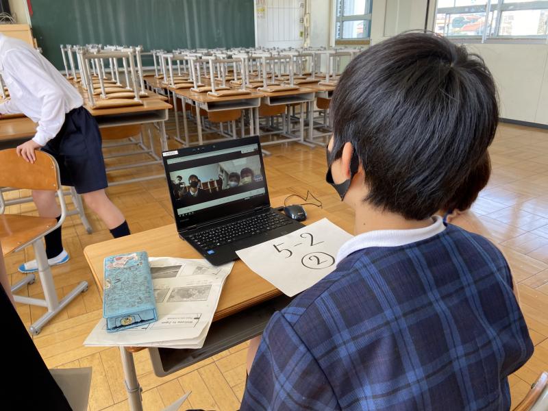 2021年3月23日 16時35分本日、英語の授業で5年生が台湾の竹北市興隆国民小学校とのオンライン交流を行いました。英語を使って日本、石川県、内灘町、学校の紹介を一生懸命していました。オンラインを活用しての交流に子どもたちは、わくわくしながら活動することができました。