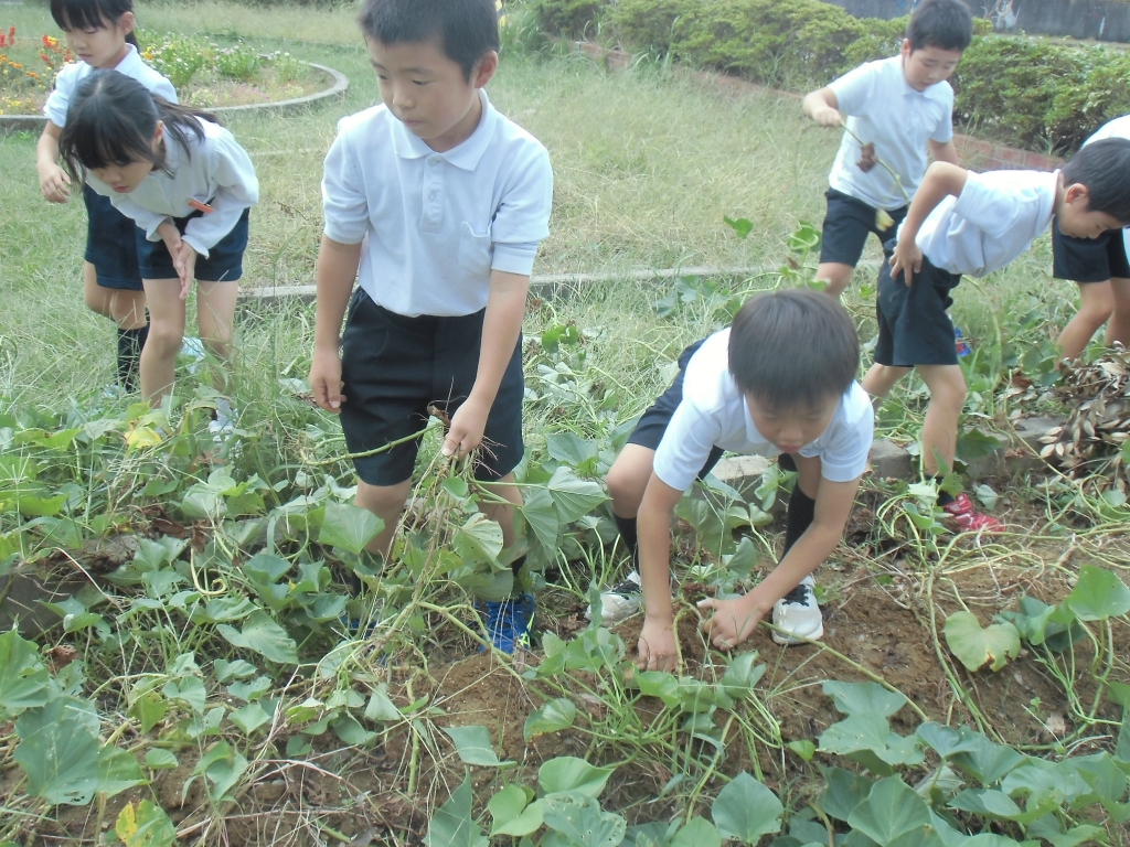 10月7日(月)春に植えたさつまいもが土の上に顔を出してきました。そこで、みんなでさつまいもほりを楽しみました。今年は、豊作でたくさんのいもがとれ、みんな大喜びでした。どんな料理をするか楽しみです。
