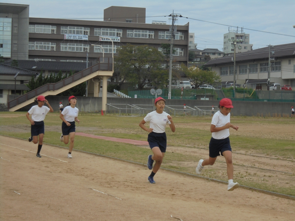 秋晴れの空の下、内灘中学校前の総合グラウンドで全校マラソン大会を行いました。