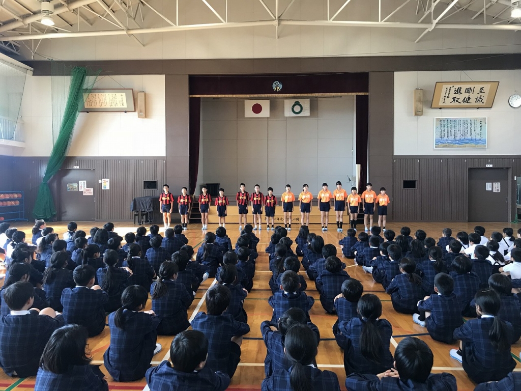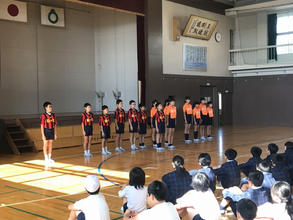 全校児童、全職員からの声援をうけ、代表児童はやる気に満ち溢れた表情になっていました。