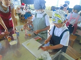 子どもたちが、自分で野菜を洗ったり切ったりして調理をしました。自分たちで育てた野菜を使って自分たちで作ったミニピザは、格別の味だったようです。みんな、夏をおいしく頂きました。ボランテイアに来てくださったお家の方々、ありがとうございました。