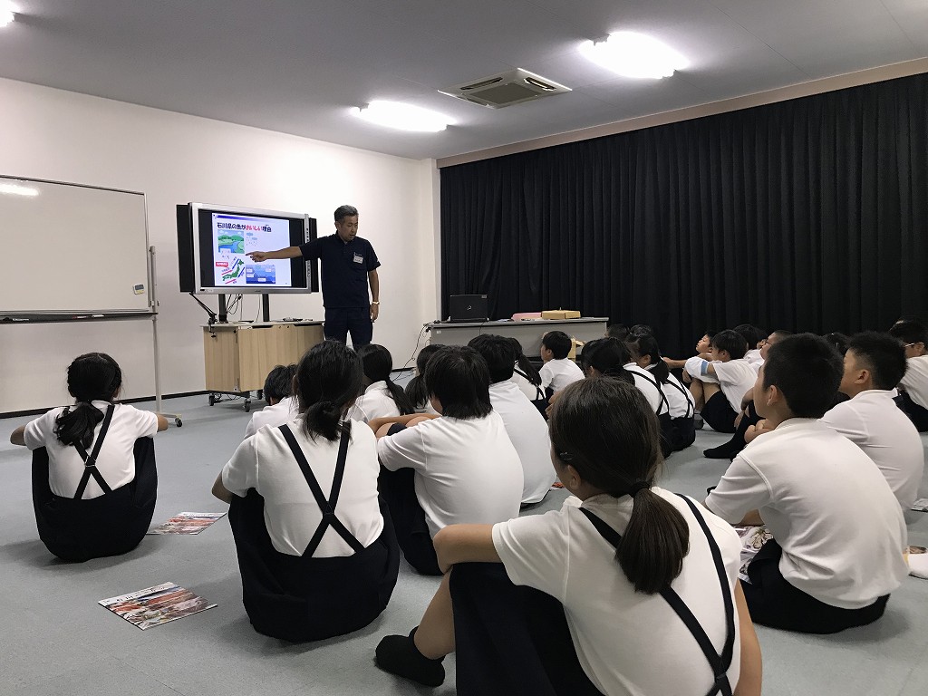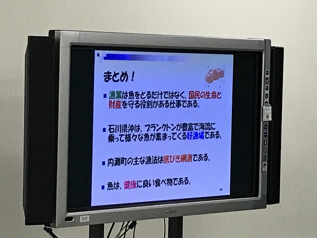 漁業のこと、石川県の魚はなぜ美味しいのかなど、たくさんのお話をしていただきました。社会科の授業で水産業について学習している子どもたちは目を輝かせていました。